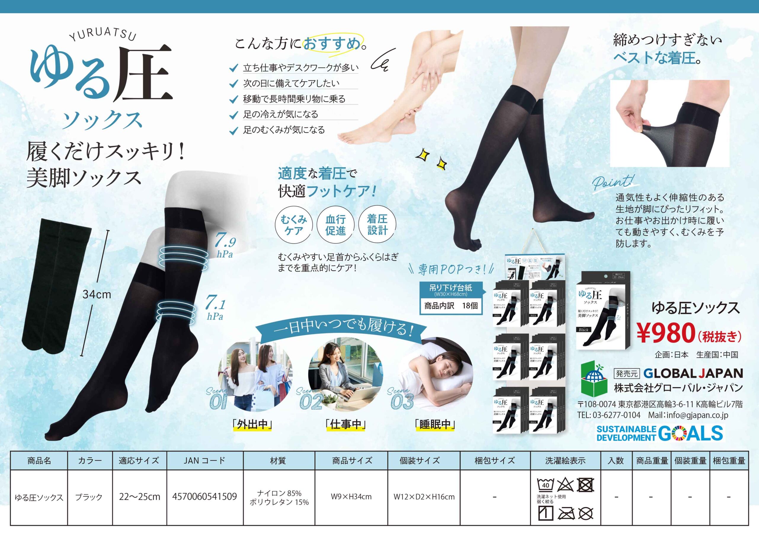 お仕事やお出かけ時に履いても動きやすく、むくみを予防します。