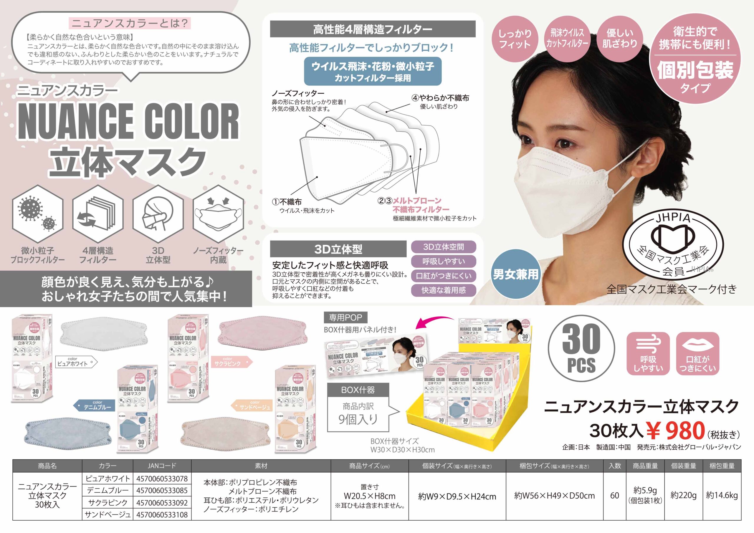 サクラピンク, サンドベージュ, デニムブルー, ピュアホワイト