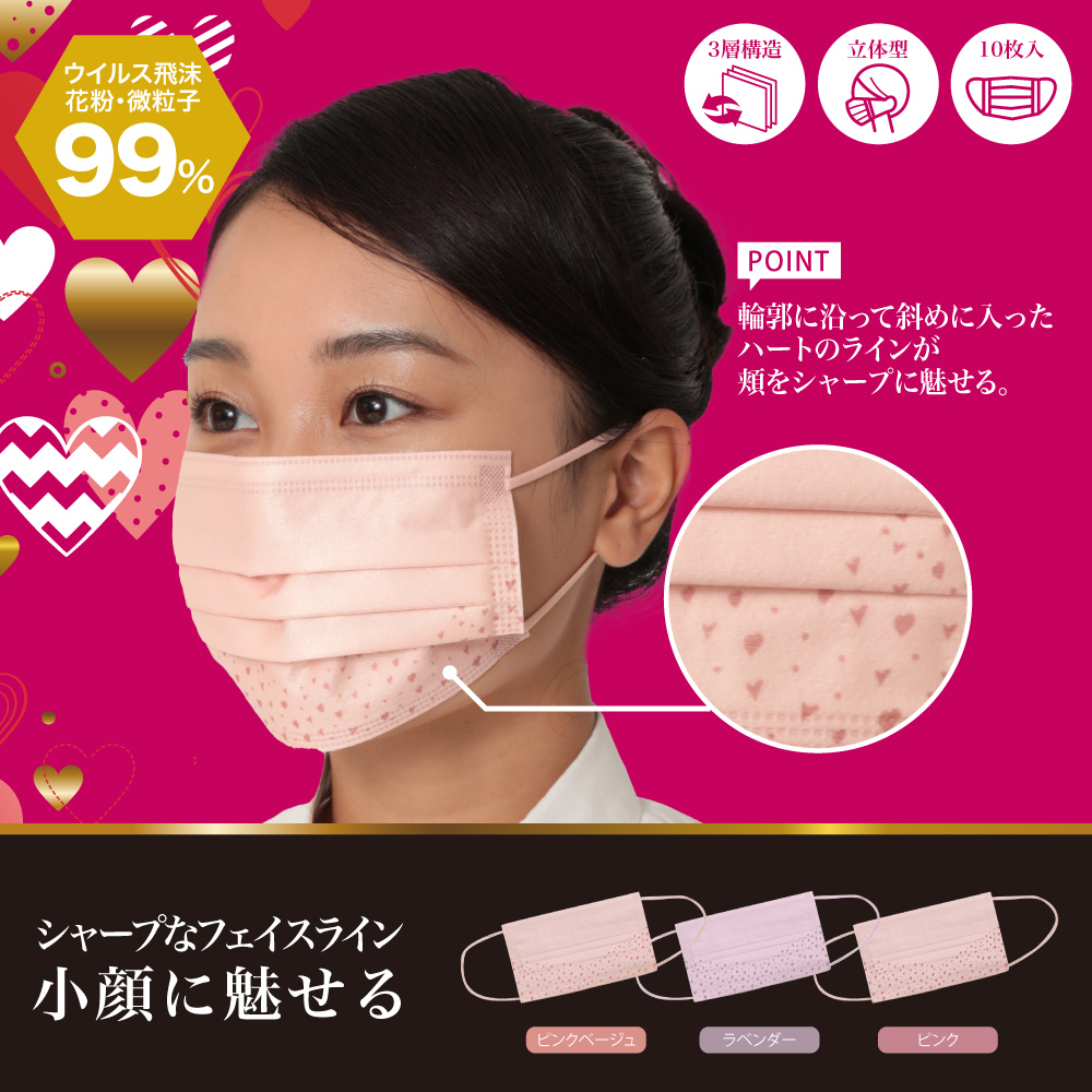 - 輪郭に沿って斜めに入ったハートのラインが頬をシャープに魅せる