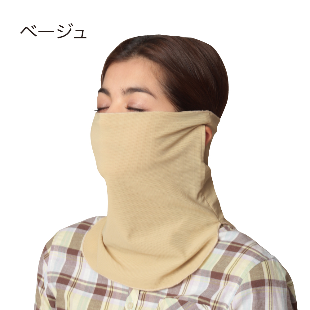 ネックカバーとしても使用できるので首元もしっかりUV対策できます(UVカット率90%以上 ブラックは94%以上ベージュは90%以上)